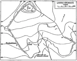 Larissa Cremaste (Ancient Greek: ἡ Κρεμαστὴ Λάρισα) was a town of Ancient Pelasgia-East Phthiotida area of less importance than Larissa in Pelasgiotis, and was situated in the district of Achaea Phthiotis, at the distance of 20 stadia from the Maliac Gulf, upon a height advancing in front of Mount Othrys.[1] It occupied the side of the hill, and was hence surnamed Cremaste, as "hanging" on the side of Mt. Othrys, to distinguish it from the more celebrated Larissa, situated in a plain. Strabo also describes it as well watered and producing vines. It it not to be mixed with the modern city of Larissa (Capital of Thessaly -Modern Greece). Larissa is actually a name meaning Fort, which justifies the fortification later discovered by archaiologists in that area. The same writer adds that it was surnamed Pelasgia as well as Cremaste.[2]
