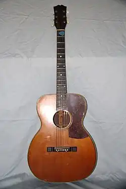 In 1934, Les Paul was playing under the name Rhubarb Red. He was introduced to the Larson brothers by Doc Hopkins of the Cumberland Ridge Runners.[3] Paul said that the brothers were unaware that he was the same person as Rhubarb Red. They insisted that Paul was a better guitarist. He wanted the brothers to build him a maple wood guitar with a half-inch solid maple top and no holes. They responded that without holes no sound would come out of the guitar. Paul was adamant, and for $45 he got his guitar, to which he added two pickups. It became one of the first electric guitars.[4]