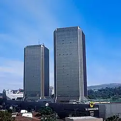 The Plaza Aguacaliente & Grand Hotel Tijuana (commonly known by locals as Las Torres) is a mixed-use high-rise building complex of twin skyscrapers in Tijuana, Mexico. With a height of 89.9 meters (295 feet) to the top floor, and 28 stories, they were the tallest buildings in Tijuana and Baja California upon completion in 1982 and were among the first skyscrapers constructed in the city.