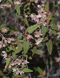 Lasiopetalum molle, commonly known as soft leaved lasiopetalum,[2] is a species of flowering plant in the family Malvaceae and is endemic to the south-west of Western Australia. It is an erect or spreading subshrub or shrub with hairy stems, thick and stiff egg-shaped leaves and pink flowers.