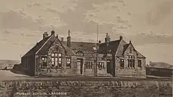 Lassodie had a Free church (St Ninian's[15]), school, a post office, Miners' Welfare Institute, and a public hall. The only shops of any importance in the place were branches of the Kelty Co-operative Society at Fairfield and at New Rows; New Rows also contained the one public house in the village, the Lassodie Tavern.[16]