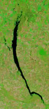 Last Mountain Lake,[3] also known as Long Lake, is a prairie lake formed from glaciation 11,000 years ago. It is located in south central Saskatchewan, Canada, about 40 kilometres (25 mi) north-west of the city of Regina. It flows into the Qu'Appelle River via Last Mountain Creek,[4] which flows past Craven. It is approximately 93 km (58 mi) long, and 3 km (1.9 mi) across at its widest point. It is the largest naturally occurring body of water in southern Saskatchewan. Only Lake Diefenbaker, which is man-made, is larger. The lake is a popular resort area for residents of south-eastern Saskatchewan.[5]
