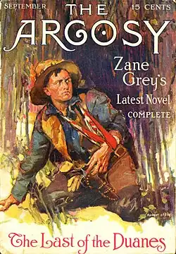 Last of the Duanes is the original version of The Lone Star Ranger. Originally written in 1913, it was rejected by Munsey's Magazine as too violent. In the meantime, Grey wrote and published another manuscript titled Rangers of the Lone Star early in 1914; later that year, Grey sold the original story to The Argosy. Publishers combined the two serials into The Lone Star Ranger, the first of Grey's works to top a best-seller list.[1]