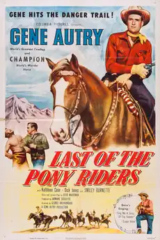 Last of the Pony Riders is a 1953 American Western film directed by George Archainbaud and starring Gene Autry in his last starring feature film and Kathleen Case.[1]