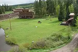 Latigo Ranch was founded as a dude ranch in Grand County, Colorado, by Frederick Kasdorf, Jr. It was originally named Snowshoe Ranch. Kasdorf single-handedly built the Main Log Lodge in 1923 soon after he and his wife arrived (by covered wagon from Denver) to homestead in the Kremmling area. He built up and ran the 550-acre (2.2 km2) Snowshoe Dude Ranch for over 30 years.