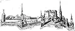 A high point along the Rhine river with a rapids section about 8 km (5.0 mi) from Säckingen Abbey was chosen as a place for a strategic bridge over the river. The Kastvogtei (a feudal land holder appointed by the Abbey) transferred his loyalty to the Habsburgs in 1173. Laufenburg is first mentioned in 1207 as Loufenberc.[4] In this 1207 document, the rights of the Abbey to parts of the village were secured while the castles on both sides of the Rhine were given over to the Kastvogt. This allowed Rudolf II of Habsburg to expand the site to the city. He is considered the founder of the city. After his death in 1232, the family split into the dominant line of Habsburg-Austria and the younger line of Habsburg-Laufenburg. The last representative of the Habsburg-Laufenburg line, Hans IV (1408) sold control of Laupenburg to Leopold III in 1386. It became part of the Further Austria and one of the four Habsburg Forest Cities on the Rhine. During the schism at the Council of Constance in 1415 the Antipope John XXIII fled to Laufenburg and withdrew his resignation.