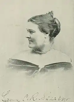 Laura Catherine Redden graduated from the Missouri School for the Deaf, a secondary school, in 1858. She did not enroll in college. Her literary skills and unmarried status made it acceptable at the time for her to enroll at certain colleges. However, there were no colleges that accepted deaf women. The National Deaf-Mute College (now Gallaudet University) was established in 1864 and did not admit female students until 1881.[1] To supplement her education, she toured Europe from 1865 to 1869. While there, she studied German, French, Spanish, and Italian. She became engaged to Michael George Brennan in 1867, but the engagement ended shortly after. Laura Catherine Redden married Edward Whelan Searing, a lawyer, in 1876, to become Laura Catherine Redden Searing. They had one child, Elsa Waller Searing, on May 4, 1880. In 1887, Laura Redden Searing and her daughter settled near Santa Cruz, California. Edward Searing stayed in New York and they divorced in 1894. Redden Searing died in 1923 and was buried in Colma, California.