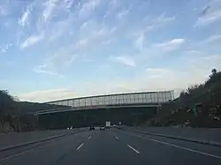 At about 29 miles the trail re-enters the state forest and then another tract of Laurel Ridge State Park,[9] crossing PA Route 31 at about 31.5 miles. The side trail to the fourth overnight shelter area is reached just after 32 miles. The trail crosses the Pennsylvania Turnpike at about 37 miles. The original pedestrian bridge over the turnpike was closed in 2009, when it was deemed to be dilapidated and dangerous for pedestrians.[10] This severed the hiking route until the bridge was reopened in 2012.[11][12] This stretch of trail runs through the state forest and three separate tracts of Laurel Ridge State Park.[6][8]