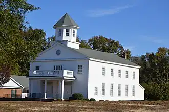 Laurel Hill Presbyterian Church is a historic Presbyterian church near Laurinburg, Scotland County, North Carolina. The congregation was founded in 1797, and the current meeting house was completed in early 1856. It is a two-story, gable front Greek Revival style frame building. The land on which the church stands was donated by planter and politician Duncan McFarland. The current building was constructed between 1853 and 1856 by black freedman Jackson Graham under contract.[2] The church was used for a short period by Union General William Tecumseh Sherman as his headquarters in March 1865 prior to the Battle of Bentonville. It is the oldest church building in Scotland County.[3][4]
