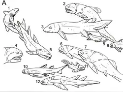 - ^ Sallan, L. C.; Friedman, M. (2011-12-21). "Heads or tails: staged diversification in vertebrate evolutionary radiations". Proceedings of the Royal Society B: Biological Sciences. 279 (1735): 2025–2032. doi:10.1098/rspb.2011.2454. ISSN 0962-8452. PMC 3311904. PMID 22189401.