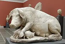 The Laurentian Sow is a 1st or 2nd century AD Roman marble sculpture of a sow with feeding suckling pigs, currently on display in the Ny Carlsberg Glyptotek in Copenhagen, Denmark.
