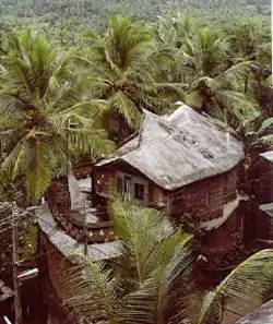 Moving to India in 1945, Baker began to work on leprosy centre buildings across the country, basing himself out of Faizabad, Uttar Pradesh. Baker quickly found the missionary lifestyle - ostentatious bungalows, socialite gatherings, and the plethora of servants waiting hand and foot - too luxurious and not in line with his values and instead decided to stay with the Indian doctor P.J. Chandy and his family. The sister of his host, Elizabeth Jacob (Baker called her "Kuni"), worked as a doctor in Hyderabad with the same leprosy organisation. The two met when Elizabeth came to Faizabad to perform an operation on her brother and to take care of the hospital duties whilst he recuperated. Baker and Jacob found themselves sharing common beliefs and decided to marry. However, as there was considerable resistance from both their families, they decided to wait. Work and travel allowed them only brief periods together, and they finally got married in 1948.[5] For their honeymoon, they traveled to the district of Pithoragarh. Once the local tribals there found out that Elizabeth was a doctor, people came to visit the couple in droves. So immediate was the need for medical help in that remote region that the Bakers decided to build a home and hospital on the slopes of one of the hills on a piece of land no one wanted and stayed there to help the people. The Bakers lived in Pithoragarh for sixteen years[6] before moving to Vagamon in Kerala in 1963 and some years later to Trivandrum. Initially, their time in Pithoragarh was lonely but they quickly became friends with the locals, including the "maldar" Dan Singh Bist who "owned most of Pithoragarh" and helped them in their charitable work.[7] Elizabeth Baker, in her memoir of her time together with Laurie Baker, The Other Side of Laurie Baker, discussed the Berinag tea that they shared that was "very special" to them, as Laurie was a man of exquisite and simple taste, who always loved the simple pleasures of life. In 1988, Laurie Baker became an Indian citizen.[8]