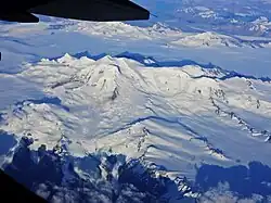 The volcano is a composite volcano and a stratovolcano covered with glaciers.[5] Its elevation is variously given as 3,542 metres (11,621 ft),[1] 3,380 metres (11,089 ft)[6] or 3,067 metres (10,062 ft). It rises about 2,400 metres (7,900 ft) above the surrounding ice, and bears traces of glacial erosion. The edifice covers an area of about 150 square kilometres (58 sq mi)[7] and about 90% of it is covered with ice. It has a parasitic vent on the western side[8] and two volcanic craters just north of the summit, one of which is 1 kilometre (0.62 mi) wide.[1] The Lautaro Glacier descends the western slope, while the icefield at the eastern foot is drained by the O'Higgins Glacier.[9]