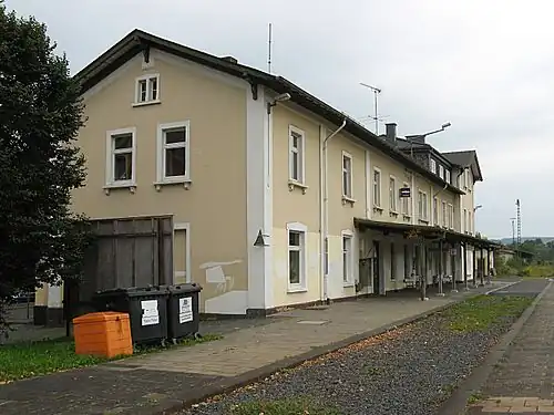 The buildings of the station are listed as a cultural monument under the Hessian Monument Protection Act (Hessischer Denkmalschutzgesetz).[5] The pedestrian over bridge north-west of the railway, a rivet iron structure, was also under monument protection. It was extended during the extension of the track layout around 1905 and was mainly used for pedestrians from Maar.[4] On 28 November 2008, it was demolished by Deutsche Bahn without consulting the State Office for the Preservation of Monuments (Landesamt für Denkmalpflege) and the town of Lauterbach.[6]