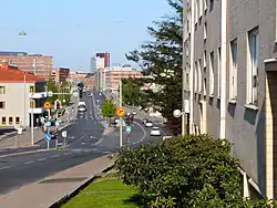 Lauttasaarentie is the main thoroughfare in Lauttasaari, home to many residents, and the location of the shopping mall Lauttis, which also serves as one of the entrances to the Lauttasaari metro station.[35] The shopping mall is the commercial centre of the island, and near its geographical centre.