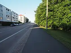 Katajaharju is located entirely to the north of the Länsiväylä highway. The houses on the shore areas of Katajaharju are terraced houses or detached houses with large lots.[16] The buildings in the middle part of the peninsula mostly consist of apartment buildings built in the 1960s.