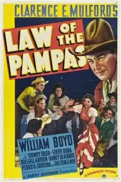 Law of the Pampas is a 1939 American Western film directed by Nate Watt and written by Harrison Jacobs. The film stars William Boyd, Russell Hayden, Sidney Toler, Steffi Duna, Sidney Blackmer, Pedro de Cordoba and William Duncan.[1][2] The film was released on November 3, 1939, by Paramount Pictures. Hungarian-born Steffi Duna plays a convincing Argentine senorita and Sidney Toler plays a comic character. Contrary to previously published reports, David Niven does not appear in Law of the Pampas, unbilled or otherwise.[3]