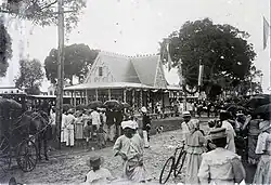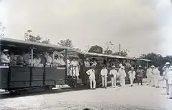 For excursions, three tarpaulin-covered wagons were used, for example during the inspection of the railway and cable car by Governor Aarnoud van Heemstra in July 1923.[9] A caravan style box was placed on an eight-wheeler flat car to provide a posh environment for refreshments.[15]