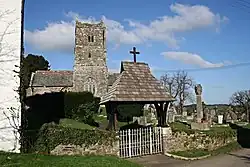 The parish church of St Michael is in Lawhitton village at SX 355 825; it is of various periods of English Gothic architecture. The plan is unusual and the tower stands in the position of a south transept. The tower is 13th century in date and there is a north aisle. The font is Norman, of the Altarnun type. Features of interest include the Jacobean pulpit, 1665, and two monuments, to R. Bennet (d. 1683) and in Coade stone to Richard Bennet-Coffin (d. 1796).[12]
