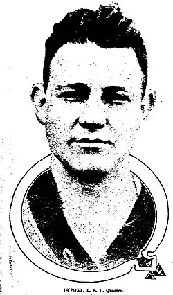 Lawrence Herbert "Dutch" Dupont (December 22, 1891[1] – April 5, 1955) was a college football player. He was a prominent quarterback for the LSU Tigers of Louisiana State University from 1910 to 1913. He was elected to the LSU Hall of Fame in 1937.[2] James Dwyer used Tom Dutton for a "kangaroo play" in which Dupont would crawl between Dutton's legs; supposedly very effective in short yardage situations.[3] He graduated from Western Military Academy.[4] Dupont never came off the field.[5] He had 15 touchdowns in 1913, four of them coming on November 22 in a game against rival Tulane in a 40–0 victory.[6][7]