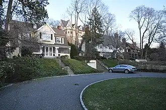 Lawrence Park Historic District is a national historic district located at Bronxville, Westchester County, New York. The district contains 94 contributing buildings, the majority of which are architecturally or historically significant. Developed in the late nineteenth and early twentieth century on twenty acres of land closely associated with the historical evolution of the surrounding community, the area attracted as residents many prominent artists and writers of the period. The Park structures were built on a wooded hillside, along winding roads. While in close proximity to one another, they achieve a feeling of seclusion and privacy. Few of the houses have had major alterations, and today Lawrence Park retains much of its original character.
