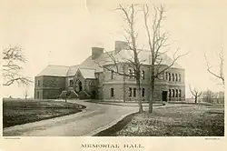 In 1986, the old campus core of Lawrenceville School (built in 1884–85) was declared a National Historic Landmark.[47][46] The landscape designer Frederick Law Olmsted planned the campus and grounds, and the Peabody & Stearns architectural firm designed the buildings, including Memorial Hall (now Woods Memorial Hall), which the National Park Service cited for the "richness of [its] materials" and "the high quality of the decorative details."[8][48] The campus core also includes a gymnasium, the headmaster's house, the Circle House dormitories, and a chapel. The landmark covers 17.74 acres (7.18 ha);[8] the present-day campus includes over 700 acres.[49]