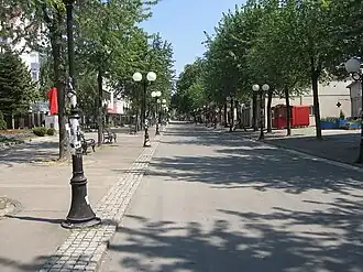 ![]() ![]() ![]() From top: Town center promenade, Memorial Church of St. Demetrius, Municipal Building | |