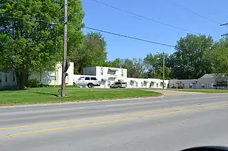 The Lazy A Motel is a historic former motel located along Old U.S. Route 66 in Springfield, Illinois. The motel was built in 1948–49 and had 13 rooms arranged in a U shape, with garages located between the rooms. The building was designed in the Southwestern Vernacular style, which can be seen in its stucco walls, its flat tile roof, and its cast iron railings and fixtures. The motel was one of many mom and pop motels built along US 66; however, it was one of only two dozen such motels remaining in Illinois as of 1994. Since the motel's closure, the building has been used for apartments.[2] The motel was added to the National Register of Historic Places on November 8, 1994.[1]