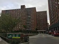 The complex of twenty 17-story apartment towers covers 40 acres (16 ha) and houses over 14,000 people in 4,605 apartments. (Each building's topmost floor is signed as 18, and there are no thirteenth floors.)[1][2] The buildings are all named after cities or countries around the world and are grouped in clusters of four based on their theme. This naming system came about during the 1964 New York World's Fair, which was located in nearby Flushing Meadows–Corona Park.[1] The development is part of Queens Community Board 4.[3]