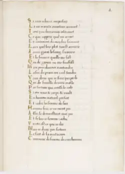 Le Livre de la mutation de fortune is a 1403 poem by Christine de Pizan.[1][2] It is a universal history that tells the story of how Fortune has affected events.[3] The frame narrative describes the process of the narrator's "transformation into a man" following the death of their husband, a metaphor used by the author expressing her adoption of the traditionally male social role of a court writer.
