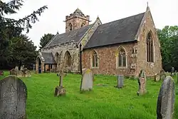 The Church of England parish church of Saint John the Baptist seems to have existed by 1252, when it was a dependent chapelry of Coleshill parish church and was granted to the Benedictine Markyate Priory.[2] The south wall of the nave and possibly the north wall date from this era.[2] Two windows in the north wall are early 14th century in style.[2] The nave was extended 9 feet (2.7 m) westwards in the 15th century for the addition of a bell-cot.[2] The south porch is another addition that seems to date from the 15th century.[2] In 1876-77 the chancel was rebuilt and the north-west tower was added.[2]