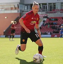 On 13 July 2018, it was announced that Galton was joining Manchester United for their inaugural season.[18] She made her competitive debut for Manchester United, as a 59th minute substitute for Kirsty Hanson, in a 1–0 League Cup victory against Liverpool on 19 August and her Championship debut in a 12–0 win against Aston Villa on 9 September.[19][20] On 13 December, she scored her first goal for the club in a 3–0 win over Everton in the FA WSL Cup.[21] She scored her first league goal in a 5–1 win over fellow title challengers Tottenham Hotspur on 31 March 2019.[22]