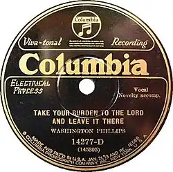 - 1927 – Washington Phillips, "Take Your Burden to the Lord and Leave It There" 10" 78rpm single Columbia 14277-D [4][10][11]