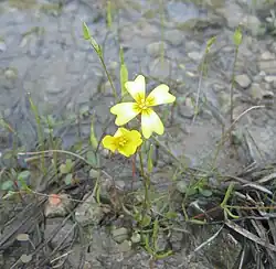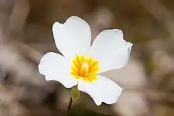 Leavenworthia stylosa typically blooms from March to May.[2][4] The flowers are about 1 inch wide and are white or yellow in color with a yellow center. The tips of the petals are notched. Yellow varieties are found more commonly north of Nashville, while white varieties are found more commonly south.[2]