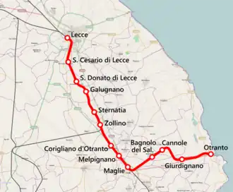 | Lecce–Otranto railway | |||||||||||||||||||||||||||||||||||||||||||||||||||||||||||||||||||||||||||||||||||||||||||||||||||||||||||||||||||||||||||||||||||||||||||