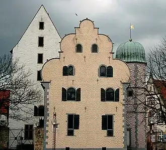 1. ^ The building, in Weser Renaissance style, was completed in 1588