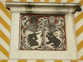 Crests of the von Leden and von Bar families on the great hall building