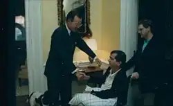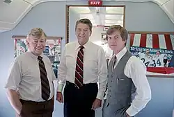 During the campaign, future President George W. Bush took an office across the hall from Atwater, where his job was to serve as his father's eyes and ears. Bush wrote in his autobiography, "I was an allegiance enforcer and a listening ear."[23] In her memoir, Barbara Bush said Atwater and the younger Bush (whom Atwater called "Junior") became "great friends."[24]