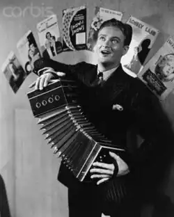 ![]() Lee Dixon sings and plays the concertina between scenes of the musical Ready, Willing and Able. | |