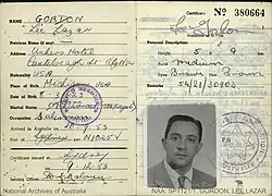 - ^ a b Sturma, Michael (1996). "Gordon, Lee Lazer (1923 - 1963)". Australian Dictionary of Biography. National Centre of Biography, Australian National University. ISBN 978-0-522-84459-7. ISSN 1833-7538. OCLC 70677943. Retrieved 24 October 2007.