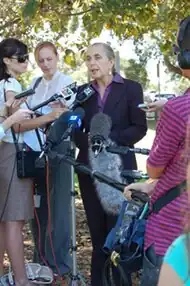 In November 2002, in the week prior to protests against the World Trade Organization in Sydney, Rhiannon spoke in support of the protesters and organised a public conference on Civil Disobedience at the NSW Parliament.[15] Rhiannon spoke against police actions during the S11 Protests, which violently protested against meetings of the World Economic Forum in Melbourne in 2000. Rhiannon called on Police Minister Michael Costa to guarantee that police violence would not be used against protesters in Sydney. Costa in return called on Rhiannon to resign for hosting the civil disobedience seminar.[16] Rhiannon lobbied the Vatican against considering the Archbishop of Sydney, George Pell, for the position of Pope because of his conservative views.[17] In 2007 she referred him to the parliamentary privileges committee, alleging "contempt of parliament" for comments he made in opposition to embryonic stem cell research legislation.[18][19]
