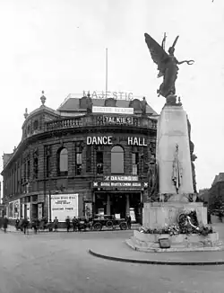 Until the 1930s the site now occupied by Victoria Square was occupied by buildings. From the late nineteenth century, Leeds Corporation had sought to widen Park Lane to create the boulevard now known as The Headrow. This scheme had begun with the demolition and relocation of Leeds Cathedral prior to the First World War. In 1936 it was decided as part of this scheme to create a garden of rest in front of the municipal buildings on the Headrow of the central library and art gallery. Previously this site had been occupied by Wharton's Hotel and the offices of the Leeds Permanent Building Society (which subsequently moved adjacent to the buildings now occupied by The Light). In January 1937 it was decided to relocate the memorial into the new garden of rest to accommodate new traffic arrangements on City Square. The garden of rest was officially opened by Lord Mayor of Leeds, Tom Coombs, following which the war memorial was re-dedicated.[2]