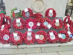 Today the memorial is the centre of Leeds' remembrance day obligations. Adjacent to the memorial are mountings for three flag poles which are brought in for the ceremony.