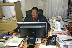 ![]() Rev. Kabs Kanu working in his UN office | |
