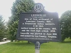 Leesville was founded in 1818.[2] A majority of the early settlers being natives of Lee County, Virginia, caused the name to be selected.[3]