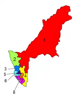 Kaohsiung City's legislative districts (Chinese: 高雄市選舉區) consist of 8 single-member constituencies, each represented by a member of the Republic of China Legislative Yuan. From the 2020 election onwards, the number of Kaohsiung's seats was decreased from 9 to 8. This mandatory redistricting eliminated Kaohsiung City Constituency 9, and separated the previous Kaohsiung City Constituency 5 into three parts: West Sanmin to the new Kaohsiung City Constituency 5, Gushan and Yancheng to the new Kaohsiung City Constituency 6, and Cijin to the new Kaohsiung City Constituency 8.[1]