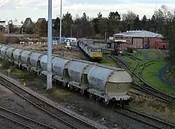 From 1959 to 2007, Class 08 shunters, Class 25, 27 and 45 locomotives could be seen at the depot.[4] Around 1987, the depot had an allocation of Class 08 shunters and Classes 20, 31, 47, 56 and 58 could also be seen stabled at the depot.[5]
