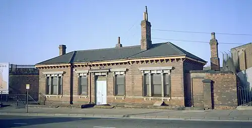 ![]() Leicester Humberstone Road station building in 1984 before being taken apart and rebuilt at Shenton | |||||