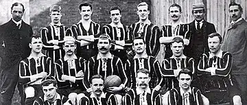 Tom Crumbie was appointed secretary on 2 August 1895, a position he held for the next 33 years.[6] Crumbie has been credited with dragging the club to national prominence. He disbanded reserve and third teams making the First XV an invitation side and introducing players from all over the country.[7][8] Tigers first silverware was the Midlands Counties Cup won for the first time in 1898 against Moseley.[9] Having won the Midlands Counties Cup every year from 1898 to 1905, they dropped out "to give other teams a chance".[10] On their return to the competition in 1909 Tigers won the cup again.[11]