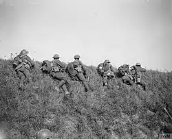 In April 1917 the division moved to the Lens area and became involved in 10 weeks' bloody fighting round Hill 70, during which the battalion suffered many casualties. The division handed over the line to the 2nd Canadian Division in early July, having secured the jumping-off positions from which the Canadian Corps launched the successful Battle of Hill 70 in August.[29][30][31]
